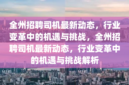 全州范圍內(nèi)掀起了一股招聘司機(jī)的熱潮,隨著物流行業(yè)的迅猛發(fā)展和交通網(wǎng)絡(luò)的日益完善,司機(jī)崗位的需求也日益增長,本文將結(jié)合事實依據(jù),以新聞報道的視角對全州招聘司機(jī)的最新動態(tài)進(jìn)行深入剖析,并融入個人的見解,以期給讀者帶來全面的認(rèn)識。