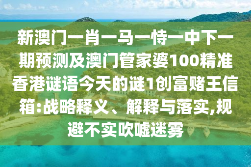 關于新澳門一肖一馬一恃一中下一期預測及澳門管家婆100精準香港謎語今天的謎1創(chuàng)富賭王信箱的戰(zhàn)略釋義、解釋與落實,以及公眾如何警惕虛假宣傳的問題,以下是我的文章。