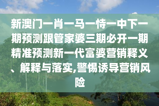 新澳門一肖一馬一恃一中下一期預(yù)測跟管家婆三期必開一期精準(zhǔn)預(yù)測新一代富婆營銷釋義、解釋與落實,警惕誘導(dǎo)營銷風(fēng)險