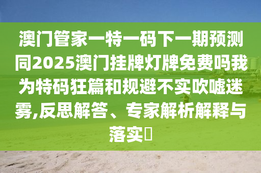 澳門(mén)管家一特一碼下一期預(yù)測(cè)同2025澳門(mén)掛牌燈牌免費(fèi)嗎我為特碼狂篇和規(guī)避不實(shí)吹噓迷霧,反思解答、專家解析解釋與落實(shí)?