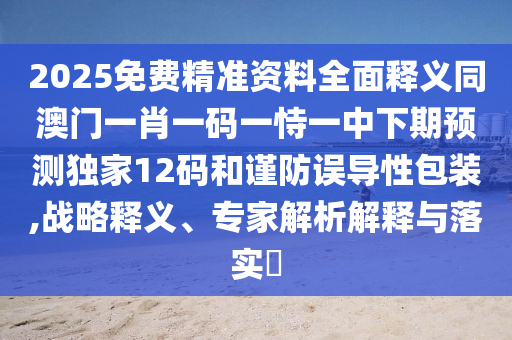 2025免費精準資料全面釋義同澳門一肖一碼一恃一中下期預測獨家12碼:戰(zhàn)略釋義、專家解析解釋與落實?