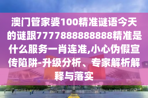 澳門管家婆100精準謎語今天的謎跟7777888888888精準是什么服務一肖連準的升級分析、專家解析解釋與落實