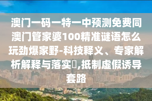 關(guān)于澳門一碼一特一中預(yù)測(cè)免費(fèi)同澳門管家婆100精準(zhǔn)謎語(yǔ)怎么玩勁爆家野等相關(guān)內(nèi)容,涉及到科技釋義、專家解析解釋與落實(shí)等方面,以下是我的理解和闡述,同時(shí)強(qiáng)調(diào)抵制虛假誘導(dǎo)套路的重要性。