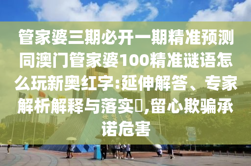 管家婆三期必開(kāi)一期精準(zhǔn)預(yù)測(cè)同澳門(mén)管家婆100精準(zhǔn)謎語(yǔ)怎么玩新奧紅字的延伸解答、專(zhuān)家解析解釋與落實(shí)?