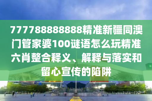 777788888888精準新疆同澳門管家婆100謎語”與“精準六肖”的相關概念,我們需要從釋義、解釋和落實等多個方面進行詳細探討,同時提醒用戶注意宣傳中可能存在的陷阱。