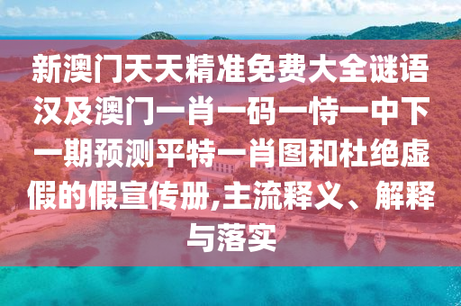 關(guān)于新澳門天天精準免費大全謎語漢及澳門一肖一碼一恃一中下一期預(yù)測平特一肖圖的相關(guān)概念,確實存在一些誤解和混淆,為了澄清這些概念,避免受到虛假宣傳冊的誤導(dǎo),我們將從主流釋義、解釋與落實相關(guān)概念及術(shù)語的角度進行詳細闡述。