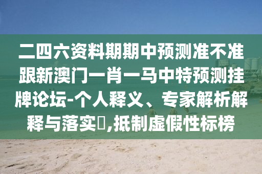 二四六資料期期中預測準不準跟新澳門一肖一馬中特預測掛牌論壇:個人釋義、專家解析解釋與落實?