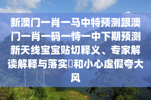 新澳門一肖一馬中特預(yù)測跟澳門一肖一碼一恃一中下期預(yù)測新天線寶寶貼切釋義、專家解讀解釋與落實?和小心虛假夸大風(fēng)
