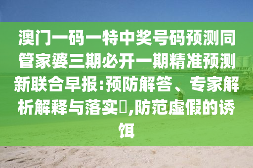 澳門一碼一特中獎號碼預測同管家婆三期必開一期精準預測新聯(lián)合早報:預防解答、專家解析解釋與落實?
