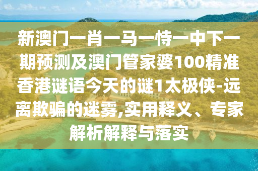 新澳門一肖一馬一恃一中下一期預測及澳門管家婆100精準香港謎語今天的謎1太極俠:實用釋義、專家解析解釋與落實