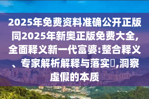 2025年免費(fèi)資料準(zhǔn)確公開正版同2025年新奧正版免費(fèi)大全,全面釋義新一代富婆:整合釋義、專家解析解釋與落實(shí)?