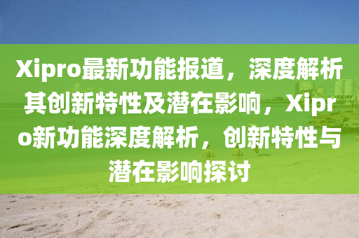 隨著科技的飛速發(fā)展,各大軟件和服務(wù)提供商都在競(jìng)相推出新功能以提升用戶體驗(yàn),Xipro公司宣布了其最新功能的推出,引起了業(yè)界的廣泛關(guān)注,本文將從新聞報(bào)道的視角出發(fā),深度解析Xipro最新功能的創(chuàng)新特性,并結(jié)合自身見(jiàn)解探討其潛在影響。