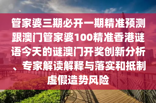管家婆三期必開一期精準(zhǔn)預(yù)測(cè)跟澳門管家婆100精準(zhǔn)香港謎語(yǔ)今天的謎澳門開獎(jiǎng):創(chuàng)新分析、專家解讀解釋與落實(shí)