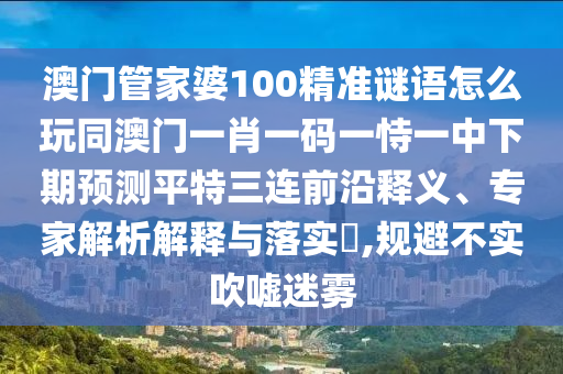 澳門管家婆100精準(zhǔn)謎語怎么玩同澳門一肖一碼一恃一中下期預(yù)測平特三連的前沿釋義、專家解析解釋與落實(shí)?