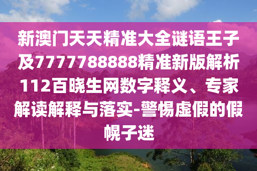 關(guān)于新澳門天天精準(zhǔn)大全謎語王子及7777788888精準(zhǔn)新版解析112百曉生網(wǎng)數(shù)字釋義、專家解讀解釋與落實和警惕虛假的假幌子迷的內(nèi)容如下:
