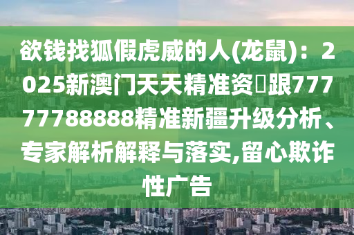 欲錢找狐假虎威的人(龍鼠):2025新澳門天天精準資料跟77777788888精準新疆和留心欺詐性廣告”的解析
