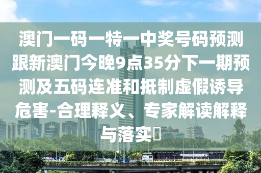 關(guān)于澳門一碼一特一中獎號碼預(yù)測、新澳門今晚9點35分下一期預(yù)測及五碼連準的解讀與落實