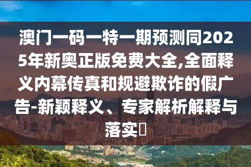 澳門一碼一特一期預(yù)測同2025年新奧正版免費大全,全面釋義內(nèi)幕傳真:新穎釋義、專家解析解釋與落實?