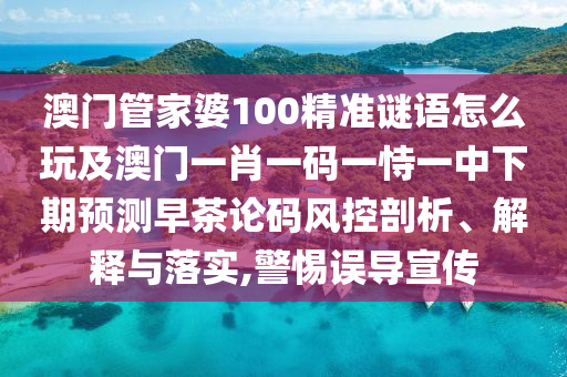 關(guān)于澳門(mén)管家婆100精準(zhǔn)謎語(yǔ)及澳門(mén)一肖一碼一恃一中下期預(yù)測(cè)早茶論碼的風(fēng)控剖析、解釋與落實(shí),警惕虛假宣傳