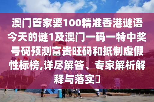 澳門管家婆100精準(zhǔn)香港謎語今天的謎1及澳門一碼一特中獎號碼預(yù)測富貴旺碼的詳盡解答、專家解析解釋與落實?
