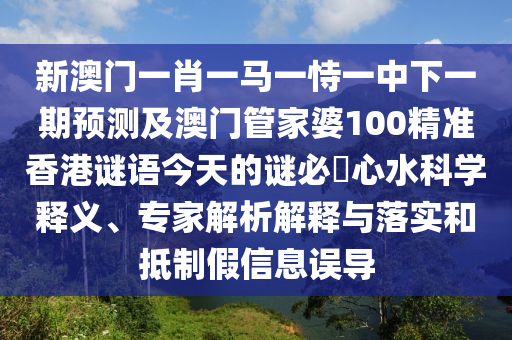新澳門一肖一馬一恃一中下一期預(yù)測及澳門管家婆100精準(zhǔn)香港謎語今天的謎必發(fā)心水的科學(xué)釋義、專家解析解釋與落實(shí)