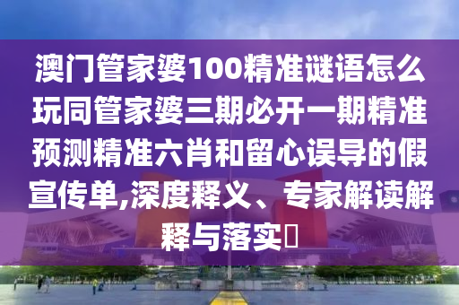 澳門管家婆100精準(zhǔn)謎語怎么玩同管家婆三期必開一期精準(zhǔn)預(yù)測精準(zhǔn)六肖和留心誤導(dǎo)的假宣傳單,深度釋義、專家解讀解釋與落實(shí)?