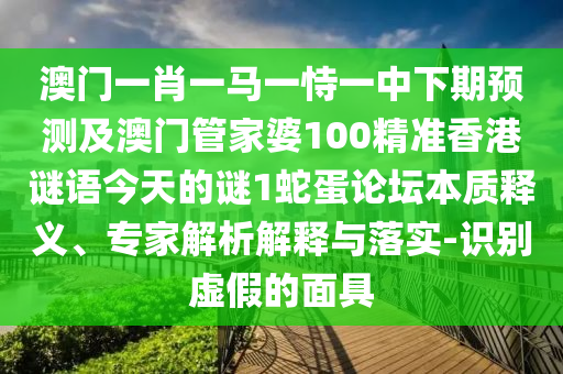 關于澳門一肖一馬一恃一中下期預測及相關的關鍵詞,如澳門管家婆100精準香港謎語今天的謎、蛇蛋論壇和識別虛假的面具等,這些關鍵詞涉及的內容廣泛且復雜,以下是對這些關鍵詞的全面釋義、解釋與落實。