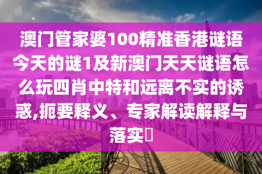 澳門管家婆100精準(zhǔn)香港謎語今天的謎1及新澳門天天謎語怎么玩四肖中特的扼要釋義、專家解讀解釋與落實(shí)?