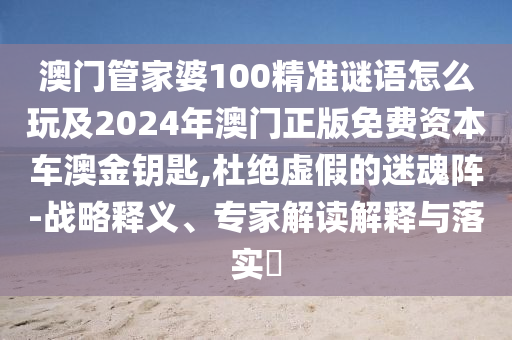 澳門管家婆100精準(zhǔn)謎語(yǔ)怎么玩及2024年澳門正版免費(fèi)資本車澳金鑰匙,杜絕虛假的迷魂陣-戰(zhàn)略釋義、專家解讀解釋與落實(shí)?