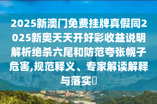 2025新澳門免費(fèi)掛牌真假同2025新奧天天開好彩收益說明解析絕殺六尾和防范夸張幌子危害,規(guī)范釋義、專家解讀解釋與落實(shí)?