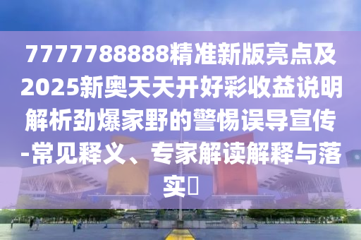 7777788888精準新版亮點”及“2025新奧天天開好彩收益說明解析勁爆家野”的相關概念,常見釋義、專家解讀與落實,以及警惕誤導宣傳的內容如下: