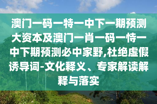 澳門一碼一特一中下一期預(yù)測大資本及澳門一肖一碼一恃一中下期預(yù)測必中家野:文化釋義、專家解讀解釋與落實(shí)