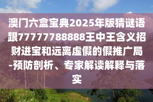 澳門六盒寶典2025年版猜謎語(yǔ)跟77777788888王中王含義招財(cái)進(jìn)寶:預(yù)防剖析、專家解讀解釋與落實(shí)