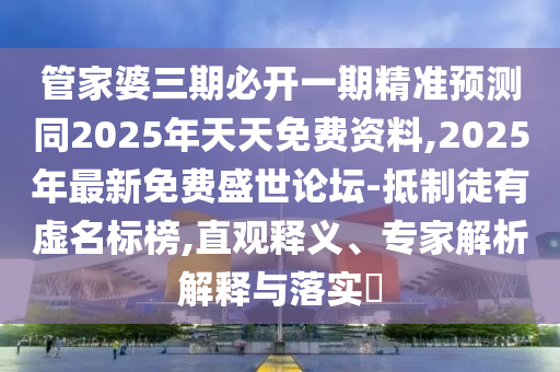 關(guān)于管家婆三期必開一期精準預(yù)測同2025年天天免費資料、2025年最新免費盛世論壇和抵制徒有虛名標榜的直觀釋義、專家解析解釋與落實