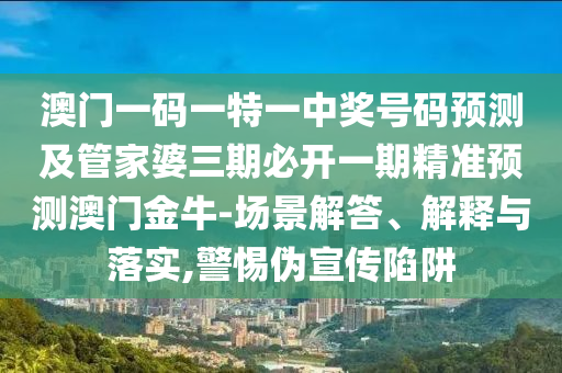 關(guān)于澳門一碼一特一中獎號碼預(yù)測及管家婆三期必開一期精準(zhǔn)預(yù)測澳門金牛的場景解答、解釋與落實(shí),我們需要明確一點(diǎn):任何關(guān)于彩票中獎號碼的預(yù)測都是沒有科學(xué)依據(jù)的,本文旨在真實(shí)、全面地解答和解釋相關(guān)關(guān)鍵詞,同時提醒公眾警惕虛假宣傳,避免陷入不必要的困境。