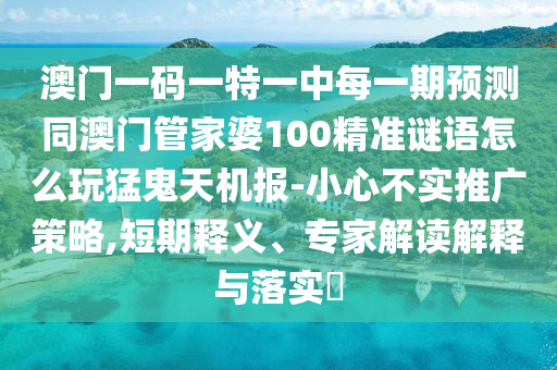 關于澳門一碼一特一中每一期預測、澳門管家婆100精準謎語、猛鬼天機報的小心不實推廣策略等內容,涉及到多方面的解讀與落實,以下是對這些關鍵詞的全面釋義、解釋與落實的詳細闡述:
