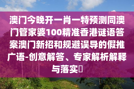 澳門今晚開一肖一特預(yù)測同澳門管家婆100精準香港謎語答案澳門新招和規(guī)避誤導的假推廣語-創(chuàng)意解答、專家解析解釋與落實?