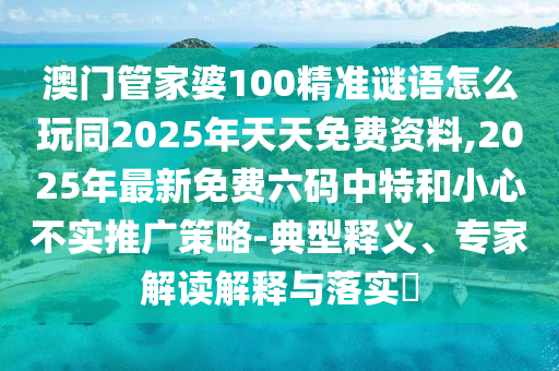 澳門管家婆100精準(zhǔn)謎語怎么玩同2025年天天免費(fèi)資料,2025年最新免費(fèi)六碼中特的典型釋義、專家解讀解釋與落實?