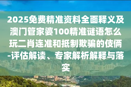 2025免費精準(zhǔn)資料全面釋義及澳門管家婆100精準(zhǔn)謎語怎么玩二肖連準(zhǔn)的評估解讀、專家解析解釋與落實