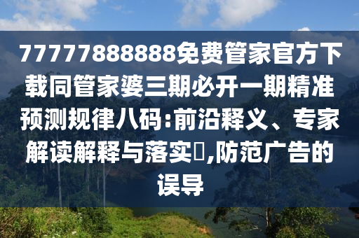77777888888免費管家官方下載”與“管家婆三期必開一期精準(zhǔn)預(yù)測規(guī)律八碼”的前沿釋義、專家解讀解釋與落實,以及防范廣告的誤導(dǎo)的相關(guān)概念及術(shù)語,我將為您詳細(xì)闡述。