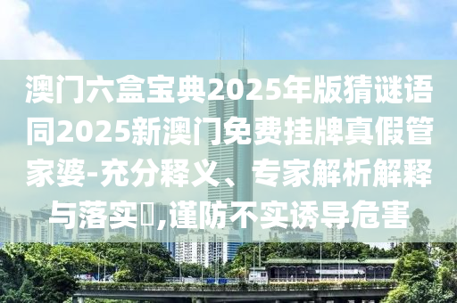 關(guān)于澳門六盒寶典2025年版、猜謎語、澳門免費(fèi)掛牌真假管家婆等關(guān)鍵詞的釋義、解釋與落實(shí),以及謹(jǐn)防不實(shí)誘導(dǎo)危害的提醒