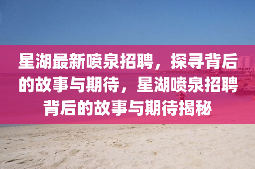 星湖公園宣布將進(jìn)行最新的噴泉表演招聘活動,這一消息立刻引起了廣大市民和網(wǎng)友的關(guān)注與熱議,本文將結(jié)合新聞報(bào)道的視角,對這次招聘進(jìn)行深入剖析,同時融入個人的見解,以期給讀者帶來全面的認(rèn)識。