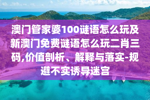 關于澳門管家婆100謎語及新澳門免費謎語二肖三碼的價值剖析、解釋與落實——警惕虛假宣傳的解讀