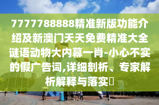 7777788888精準新版功能介紹”及“新澳門天天免費精準大全謎語動物大內(nèi)幕一肖”的相關(guān)概念,涉及到一些可能與博彩、預(yù)測有關(guān)的宣傳語,這類內(nèi)容往往較為復(fù)雜且具有一定的迷惑性,在此,我們將從專家解讀的角度,詳細剖析并解釋相關(guān)概念,以幫助用戶辨別不實的假廣告詞。