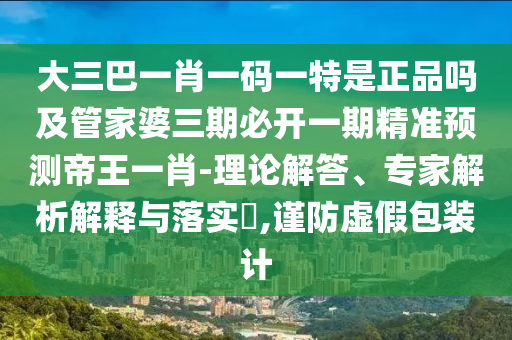 關(guān)于關(guān)鍵詞“大三巴一肖一碼一特是正品嗎”、“管家婆三期必開一期精準(zhǔn)預(yù)測(cè)帝王一肖”以及“謹(jǐn)防虛假包裝計(jì)”的解析與解讀,涉及到多個(gè)方面,包括全面釋義、專家解讀與落實(shí)以及警惕虛假宣傳等,以下是對(duì)這些關(guān)鍵詞的理論解答、專家解析解釋與落實(shí)的詳細(xì)內(nèi)容。