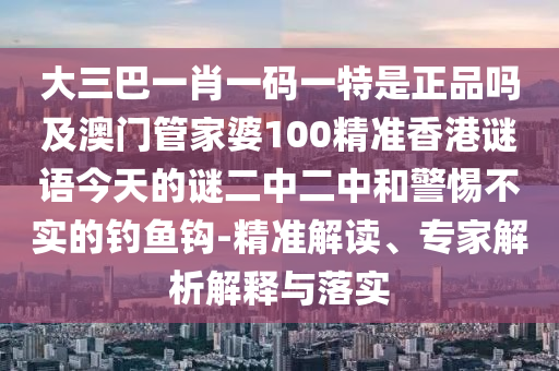 本文將圍繞關(guān)鍵詞“大三巴一肖一碼一特是正品嗎”、“澳門管家婆100精準(zhǔn)香港謎語今天的謎二中二中”,進(jìn)行解讀與解析,并提醒公眾警惕虛假宣傳與不實(shí)釣魚鉤。