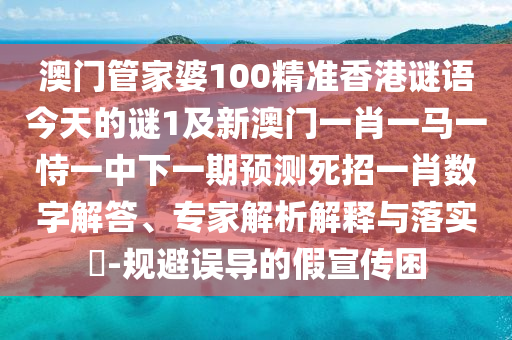 關(guān)于澳門管家婆100精準(zhǔn)香港謎語(yǔ)今天的謎1及新澳門一肖一馬一恃一中下一期預(yù)測(cè)死招一肖的規(guī)避誤導(dǎo)的假宣傳困的數(shù)字解答、專家解析解釋與落實(shí)的問題,這是一個(gè)涉及到博彩預(yù)測(cè)、謎語(yǔ)解讀以及防范假宣傳的復(fù)雜話題,以下是對(duì)這些關(guān)鍵詞的全面釋義、解釋與落實(shí)的詳細(xì)闡述。
