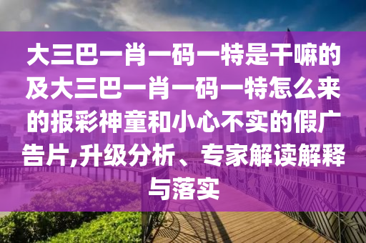 大三巴一肖一碼一特是干嘛的及大三巴一肖一碼一特怎么來的報彩神童和小心不實的假廣告片,升級分析、專家解讀解釋與落實