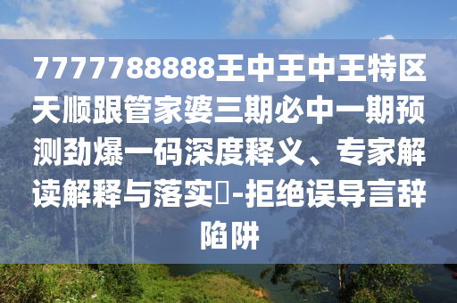 7777788888王中王中王特區(qū)天順跟管家婆三期必中一期預(yù)測(cè)勁爆一碼:深度釋義、專家解讀解釋與落實(shí)?