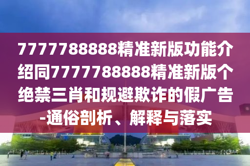 7777788888精準新版功能介紹”與“7777788888精準新版?zhèn)€絕禁三肖”的相關概念,近期似乎有一些廣告或宣傳中頻繁出現(xiàn)這些詞匯,引起了公眾的廣泛關注,本文將從通俗的剖析、解釋與落實這些概念的角度出發(fā),幫助用戶更好地理解并避免受到欺詐的假廣告的誤導。